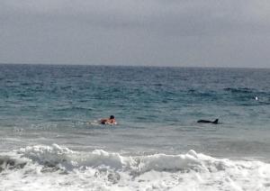 We saw dolphins that leapt in the air, unafraid to be who they were meant to be. And, seeing my son frolic along the shore with his sister and Miss L, not giving a rat’s butt about Z who changed her mind about him sleeping over, it was clear that he was happy with who he was also.