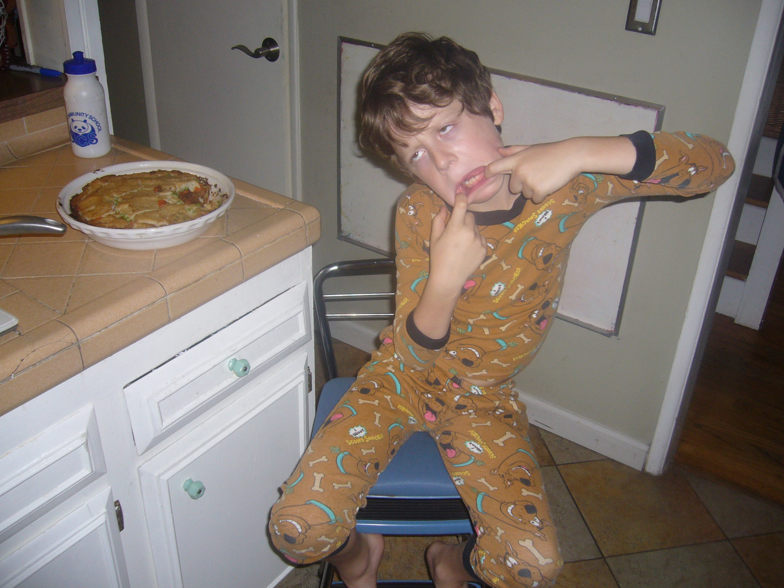 It then got a bit louder. “Stink occasionally warbles or squeaks, but he never stops laughing. He’s writing an adventure novel and has never met a dog or new person he hasn’t liked. He’s pretty darn creative, and, well, let’s face it. He’s weird! Hooray for oddness!”