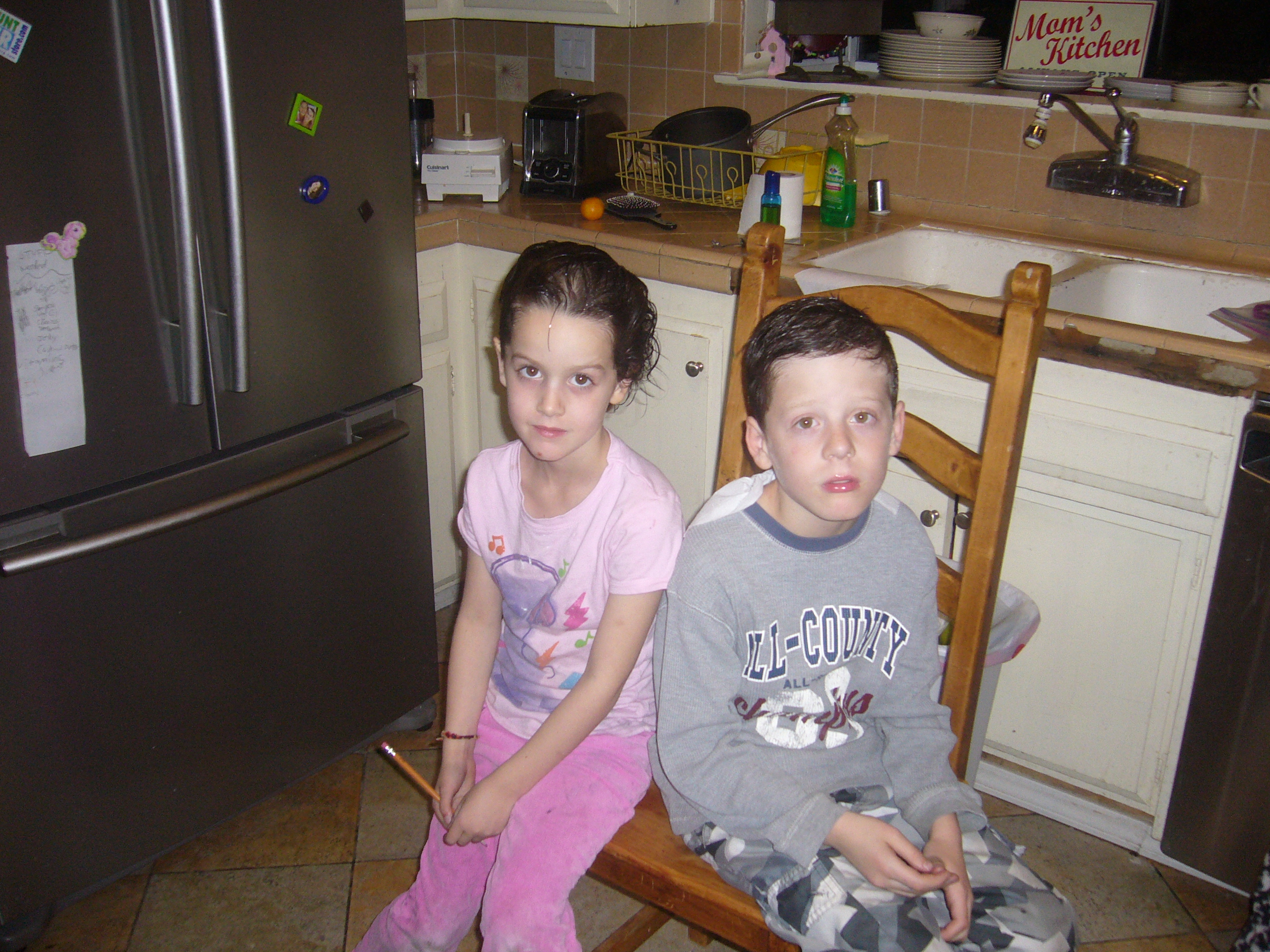 * Photo on top taken of Miss L, Pip and Stink doing their signature “lice hug!” (They can be social as they want, but I can’t go through the Lice Fiasco of 2010 EVER AGAIN, nor can my husband. I think he’d rather pay the “Lice Fairy” another $200 to sit in our beat up kitchen and pull nits than hear me ruminate for hours about if RIT – the hair chemicals sold at Rite Aid and other fine over the counter establishments – does or does not induce throat clears or head nods. Who can blame him? Check out the kids. They could be cast in a Tim Burton movie!)
