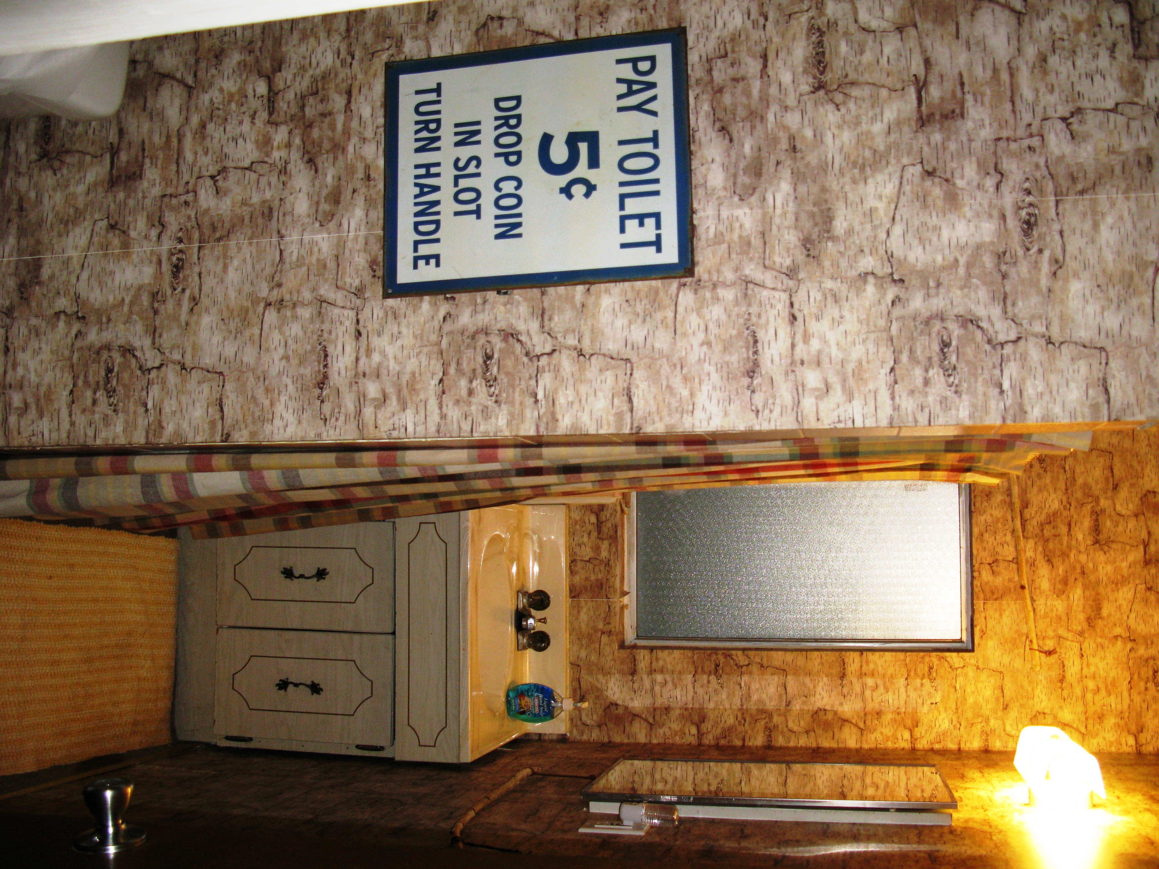 The Bad News: Our new rental company told us that they wouldn’t even consider putting our home on the full time market based on the condition it’s in. Apparently having dark pine cone wall paper in the bedroom, blue snow flakes in the kids room, deer patterned paper in the living room, faux wood paper in the bath and dark green paint in the kitchen is more than satisfactory for Kermit, Frosty or the Bernstein Bears, but most people want a more “relaxed” atmosphere when plunking down a grand/month to live in a 900 square foot home. (“Plates! All I see are tacky plates when I look at your living room!” our realtor bemoaned.)
